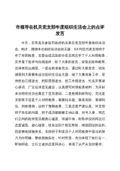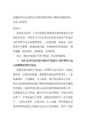 县委副书记在县委办公室党支部党史学习教育专题组织生活会上的讲话同志们:按照会议安排,X书记和我以普通党员身份参加办公室组织生活会,共同学习XX总书记在庆祝中国共产党成立100周年大会上的重要讲话,一起谈感受、谈体会,结合党史学习教育,检视剖析问题,开展批评和自我批评,相互警醒、相互监督,共同提高、共同进步。首先,我结合近期工作学习情况,作以对照检视。一、XJP总书记在庆祝中国共产党成立100周年大会上的重要讲话学习体会观看庆祝中国共产党成立一百周年大会实况后,令我心潮澎湃,让我无比震撼,我感觉到党的光荣和伟大。一是民族独立、人民解放,令人振奋。我们党从诞生之日起,就义无反顾地肩负起救亡图存的民...