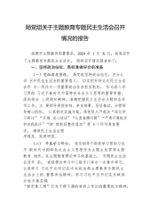 根据学习贯彻A新时代中国特色社会主义思想主题教育总体部署,今天我们召开主题教育专题组织生活会。本次组织生活会的主题是:学习贯彻A新时代中国特色社会主义思想,聚焦学思想、强党性、重实践、建新功总要求,对照凝心铸魂筑牢根本、锤炼品格强化忠诚、实干担当促进发展、践行宗旨为民造福、廉洁奉公树立新风具体目标,深入学习领悟以学铸魂、以学增智、以学正风、以学促干的丰富内涵和实践要求,通过开展批评和自我批评,检视问题抓好整改,推动形成统一思想、统一意志、统一行动,坚定拥护“两个确立”、坚决做到“两个维护”。会前,支部深入开展理论学习和谈心交流,以直面问题的勇气和刀刃向内的决心,认真查摆和检视问题,深刻剖析问题...