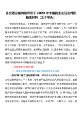 县交通运输局领导班子202X年专题民主生活会对照检查材料(五个带头)根据县纪委机关、县委组织部、县党史学习教育领导小组《关于开好党史学习教育专题民主生活会的通知》(x组通〔2022〕x号)文件要求我局党组制定了专题民主生活会工作方案,召开党组会,认真组织学习XJP新时代中国特色社会主义思想和XJP总书记近期重要系列讲话,研究部署相关工作,为开好民主生活会奠定了坚实的基础。同时,结合本部门的工作实际,紧扣民主生活会的主题,召开座谈会,广泛征求群众意见,班子成员之间开展谈心谈话,批评和自我批评,以“五个带头”为重点,通过自己找、群众提、集体议等方式,查摆问题不足,深刻检视剖析,制定整改措施,撰写发...