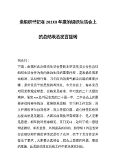 党组织书记在202XX年度的组织生活会上的总结表态发言提纲