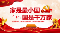 家是最小国加强爱国主义教育弘扬爱国主义精神主题教育PPT国是千万家前言QIANYAN近日,中央“不忘初心、牢记使命”主题教育领导小组印发《关于在“不忘初心、牢记使命”主题教育中加强爱国主义教育、弘扬爱国主义精神的通知》,指出在“不忘初心、牢记使命”主题教育中,要加强爱国主义教育,弘扬爱国主义精神,激发广大党员干部和人民群众的爱国热情,凝聚奋进新时代的磅礴伟力,做好党中央部署正在做的事情。爱国主义是千百年来固定下来的对自己祖国的一种最深厚的感情。它同为国奉献、对国家尽责紧紧地联系在一起。爱国主义是一种崇高的思想品德。中华民族的历史之所以悠久和伟大,是因为爱国主义作为一种精神支柱和精神财富是起了重...