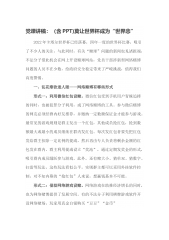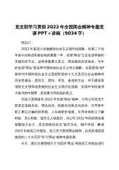 主题党课(含PPT):以大会精神为统领,奋力在新时代新征程中谱写高质量发展新篇章党的二十大,是在全党全国各族人民迈上全面建设社会主义现代化国家新征程、向第二个百年奋斗目标进军的关键时刻召开的一次十分重要的大会,对于我们党在新时代新征程上团结带领全国各族人民全面建设社会主义现代化国家、全面推进中华民族伟大复兴,具有重大的现实意义和深远的历史意义。学习宣贯党的二十大精神,是当前和今后一个时期全党全国的首要政治任务。习主席对学习宣贯高度重视,作出一系列重要指示,省委和市委相继动员部署,迅速掀起了学习宣贯热潮。为提领站位、深化理解,进一步把学习宣贯引向深入,今天我围绕“以党的二十大精神为统领,奋力谱写...