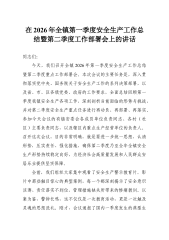 在2026年全镇第一季度安全生产工作总结暨第二季度工作部署会上的讲话