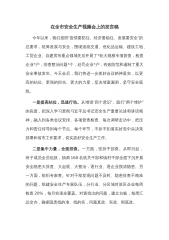 关于XX镇2023年安全生产、应急管理、防灾减灾及森林防灭火工作的主持讲话材料同志们:过去一年,在镇党委政府的坚强领导下,在各村(社区)、办所的通力配合下,我们认真贯彻落实党的XX大精神和习近平总书记关于安全生产、应急管理、防灾减灾和森林防灭火工作系列重要论述精神,未发生较大及以上生产安全事故,防汛抗旱、地灾防治等自然灾害基本可控,全镇安全生产与应急管理形势总体稳定。一是安全生产行动推进有力。安全生产专项整治三年行动圆满收官,全镇累计排查企业及个体户900余次,发现安全隐患1500余条,已全部完成整改,及时消除了安全风险,工作成效显著。深入实施国务院安全生产十五条硬措施、扎实开展安全生产大检查...