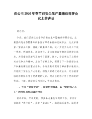 在XX镇安全生产暨经济运行工作专题研究部署会议上的讲话(精品)同志们:今天我们在这里召开全镇安全生产暨经济运行工作专题研究部署会议,主要任务是深入贯彻落实上级关于安全生产与经济发展的决策部署,全面传达学习旗委、旗政府近期相关会议精神,认真分析当前我镇面临的新形势、新挑战,并对下一阶段的重点工作进行系统安排和周密部署。时值岁首,各项工作千头万绪,在这个关键节点召开此次会议,既是一次收心会,更是一次动员会、部署会,目的就是要动员全镇上下立刻紧张起来、行动起来,以“开年即冲刺”的姿态,牢牢守住安全生产的底线红线,奋力推动经济发展实现“开门红”,为圆满完成全年各项目标任务奠定坚实基础。刚才,相关分管领...