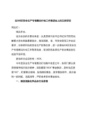 在XX区安全生产专项整治行动工作推进会上的主持讲话同志们:现在开会。这次会议的主要任务是:认真贯彻习近平总书记关于防范化解重大安全风险重要指示,落实国家、省、市安全防范工作会议要求,分析研判当前安全生产形势任务,进一步推动XX区安全生产专项整治行动工作取得实效,坚决防范各类生产安全事故发生创造平安环境。参加本次会议的有:XXX。今年是安全生产专项整治行动集中攻坚之年,各部门要认真贯彻领导指示批示精神,深刻吸取“XXX”事故教训,及时动态更新“XX”,盯紧重点领域,加强跟踪整改,直至整改销号,真正做到一抓到底、见底清零,严防各类安全事故发生。一、狠抓危险化学品全行业排查区应急局会同有关部门要对照...