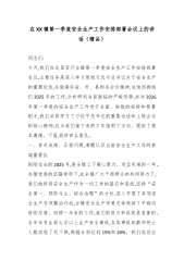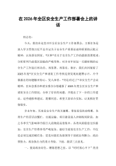 在XX区2025年安全生产和消防工作总结暨2026年第一季度安全生产和消防安全部署会议上的讲话(精品)同志们:大家上午好。今天,我们在这里召开全区2025年安全生产和消防工作总结暨2026年第一季度安全生产和消防安全部署会议,主要任务是深入学习贯彻习近平总书记关于安全生产工作的重要指示批示精神,全面回顾总结2025年工作,深刻分析当前面临的形势,系统部署今年第一季度重点任务,动员全区上下进一步统一思想、压实责任、狠抓落实,坚决筑牢安全生产的铜墙铁壁。刚才,区安委会办公室通报了2025年全区安全生产和消防工作情况,对第一季度工作作出了具体安排,我都同意,请大家认真抓好贯彻落实。下面,我再讲三点意...