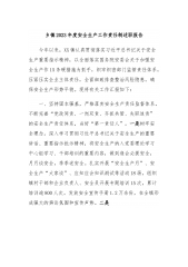 在县安委会2024年第一次全体(扩大)会议暨全县安全生产工作会议上的主持讲话同志们:经县委、县政府研究决定,今天我们召开区安委会2018年第一次全体(扩大)会议暨全县安全生产工作会议。主要任务是,深入学习贯彻全市安全生产电视电话会议和道路交通安全工作会议精神,全面总结2023年全县安全生产工作,准确把握当前面临的形势和存在的问题,安排部署2024年安全生产重点工作,全力防控各类安全生产事故,促进全县安全生产形势持续稳定向好。参加今天会议的有:县四大班子在家领导,县属各部门主要负责人,各乡镇党委书记、乡镇长,各社区主要负责人,县应急局全体干部,部分县属重点企业负责人,共160多人。今天的会议共有...