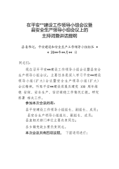 在平安卓资建设工作领导小组会议暨县安全生产领导小组会议上的主持讲话提纲