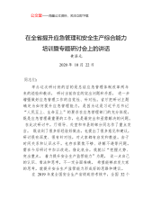公文堂——海量公文资料,关注立即下载把握大势明确重点着力提升安全生产监管能力——在全省提升应急管理和安全生产综合能力培训暨专题研讨会议上的讲话黄泽元2020年09月18日同志们:举办这次研讨班的目的是总结应急管理体制改革两年来的经验和教训,研讨当前存在的突出问题和矛盾,进一步增强做好应急管理工作的自觉性、针对性。省厅把研讨主题确定为如何提升应急管理能力,是因为这是习近平总书记“人民至上、生命至上”的要求在应急管理部门的充分体现,既是应急管理最重要的工作,也是最突出和亟需解决的问题。在此次研讨中,厅领导、处室和市县的部分同志作了重点发言,既谈到了很多好经验好做法,也提出了很多意见和建议,研讨很有...