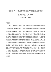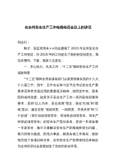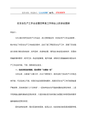 更多内容,欢迎加入“公文共享群”QQ号:578165979在安全生产工作会议暨四季度工作例会上的讲话提纲同志们:今天,我们召开安全生产工作会议,深入贯彻落实市、区安全生产工作会议精神,刚才传达了对安全生产工作的指示要求,总结了第三季度安全生产工作,部署了安全隐患大排查大整治具体安排,非常及时,也很有必要。请同志们务必坚决落实市、区委的明确部署和要求,绝不打折;务必高度重视、毫不松懈,采取有力措施确保区域安全生产工作总体平稳。下面,我再讲四点意见:一、站在讲政治的高度,坚决贯彻“力度统一论”今年以来,大家做了大量工作,付出了艰苦努力,基本实现了安全生产工作的总体平稳,可以说来之不易。但我们也必须...