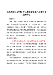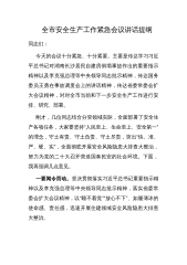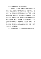 全区第四季度(冬季)安全生产工作会议暨消安委第四季度工作会议讲话提纲同志们:现在开会。这次全区安全生产和消防安全工作会议,主要任务深入学习贯彻习近平总书记关于安全生产和消防安全的重要论述和指示批示精神,通报近期重大事故隐患工作开展情况,传达“消防宣传月”安全隐患专项活动方案,分析研判当前安全形势和突出问题,部署冬季安全生产和消防安全重点工作,有效防范化解重大安全风险,坚决遏制重特大事故,推动全区安全生产形势持续稳定向好。参加今天会议的有各乡镇(街道)乡镇长(主任),区安委会成员单位主要负责人或分管负责人,经济开发区、高端产业聚集区分管负责人,全区部分重点企业主要负责人。今天的会议共有四项议程,...