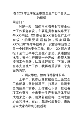 在2022年全州校园及周边安全生产大检查“百日攻坚”行动暨学生防溺水、“双减”等重点工作推进会议上的讲话同志们:今天上午,全省召开了进一步推进“双减”工作视频会,下午,我们在这里召开全州校园及周边安全生产大检查“百日攻坚”行动暨学生防溺水、“双减”等重点工作推进会,主要任务是落实上级会议精神,总结我州上半年的工作开展情况,安排部署下一阶段的重点工作。刚才,xx副秘书长传达了省委副书记xx,州委书记xx的批示精神,领学了xx市防溺水的先进经验,州教体局xx同志客观实在的总结了全州校园安全工作开展情况,分析了问题和短板,提出了整改要求,部署了下步的工作。各县市政府通报了“百日攻坚”行动开展情况,州...