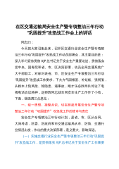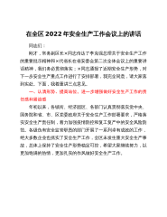 在全区“防风险保稳定”、汛期安全生产暨2022年第三季度安委会全体(扩大)会议上的讲话同志们:今天会议主要目的是深入贯彻落实省市防风险保稳定会议精神和6月22日全市汛期安全生产紧急电视电话会议精神,对我区下半年安全生产、应急管理工作进行安排部署。刚才,*同志传达了国家、省、市领导有关防汛救灾工作指示批示精神和全市汛期安全防范工作紧急电视电话会议精神,特区应急管理局通报了全区2022年上半年安全生产、应急管理和自然灾害工作开展情况,介绍了特区成立应急救援总指挥部及专项应急指挥部情况,有关部门和企业作了发言,参会的各位副区长也就自己分管领域的安全生产工作进行了安排,请大家认真抓好落实,下面,我再讲...