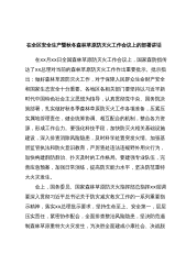 在全区安全生产暨秋冬森林草原防灭火工作会议上的部署讲话在xx月xx日全国森林草原防灭火工作会议上,国家森防指传达了xx总理对当前的森林草原防灭火工作作出重要批示。批示指出:做好森林草原防灭火工作,对于保障人民群众生命财产安全和国家生态安全十分重要。各地区各相关部门要坚持以习近平新时代中国特色社会主义思想为指导,认真贯彻党中央、国务院决策部署,扎实做好秋冬季森林草原防灭火工作各项准备,压紧压实属地管理责任,健全统筹协调、相互配合的机制,整合各方资源,形成工作合力。要强化科技手段,加快防灭火相关基础设施建设,深入排查消除风险隐患,及时科学处置突发火情。加强基层监管执法和防火意识教育,严厉查处违法违...