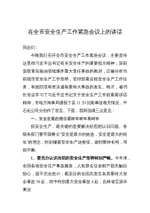 同志们:按照**书记、**市长部署要求,今天我们召开全市安全生产工作强作风、抓落实、护航党的二十大会议,主要任务是,深入学习贯彻习近平总书记关于安全生产重要指示精神,全面落实全国、全省和全市安全生产电视电话会议精神和全国矿山安全生产视频会议精神,对国庆假期、党的二十大前后安全生产特别是煤矿安全生产工作再动员、再部署、再安排。刚才,**同志通报了全市安全生产有关情况,提出了下一步工作安排建议,大家要认真抓好落实。下面,我重点强调五个方面意见:一、坚持“两个至上”,进一步提高对当前安全生产工作的极端重要性的认识国庆节马上就到了,节后将召开党的十九届七中全会,十月中旬要召开党的二十大,这是全党和全国...