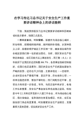 在学习传达习总书记关于安全生产工作重要讲话精神会上的讲话提纲
