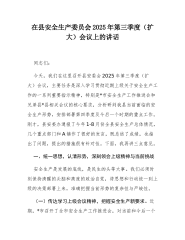 在县安全生产委员会2025年第三季度(扩大)会议上的讲话