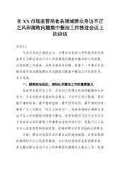 在XX市场监管局食品领域群众身边不正之风和腐败问题集中整治工作推进会议上的讲话