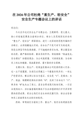 在2026年公司杜绝“重生产、轻安全”安全生产专题会议上的讲话