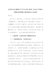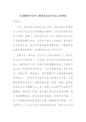 区委书记在2025年下半年乡镇(街道)安全生产形势分析暨应急管理能力建设推进会上的讲话同志们:安全生产,重于泰山。它是守护人民群众生命财产的“铜墙铁壁”,是推动经济社会平稳发展的“压舱石”。在2025年下半年这个关键节点,我们召开乡镇(街道)安全生产形势分析暨应急管理能力建设推进会,就是要以如履薄冰的心态、真抓实干的作风,筑牢安全生产防线,提升应急管理能力,为全区高质量发展保驾护航。一、认清形势,在居安思危中增强责任担当(一)成绩值得肯定,坚定前行信心今年以来,全区上下深入贯彻落实习近平总书记关于安全生产和应急管理的重要指示批示精神,按照党中央、国务院和省、市、区委的决策部署,扎实推进安全生产...