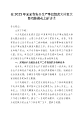 县文旅局党组书记在五一假期及夏季旅游安全生产工作部署会议上的讲话同志们:今天召开这次会议,主要目的是深入贯彻国家、省、市、县关于安全生产的决策部署,全面动员部署“五一”假期及夏季旅游旺季安全生产工作。当前,群众出游需求集中释放,全县即将迎来客流高峰,但越是旅游市场火热,越要警惕风险隐患抬头。安全生产是文旅行业的生命线,容不得半点马虎和懈怠。我们必须以“如履薄冰”的警觉、“万无一失”的标准,抓实抓细安全生产各项工作,坚决守牢安全底线,为游客营造一个安心、舒心、放心的文旅环境。下面,我讲三点意见:一、筑牢思想防线,以最高站位扛起安全责任安全生产是文旅行业发展的基石,是保障游客生命财产安全、维护社会...
