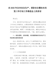 在全区防汛防台抗旱、防灾减灾救灾和安全生产暨区安委会(区防减救灾委)成员会议上的讲话同志们:今天,我们召开全区防汛防台抗旱、防灾减灾救灾和安全生产工作会议,既是贯彻落实总书记关于统筹发展和安全重要论述的政治要求,也是立足X实际、守护群众安危的紧迫行动。刚才,市里会议对当前安全工作作了系统部署,我们必须闻令而动、听令而行。当前,极端天气多发频发、安全生产形势复杂、城市运行风险交织,安全工作容不得半点侥幸和懈怠。全区上下要始终把人民至上、生命至上刻在骨子里、融入行动中,以“七个到位”筑牢安全屏障,为高质量发展营造和谐稳定环境。下面,我讲七方面意见:一、思想认识要到位思想是行动的先导,认识是落实的前...