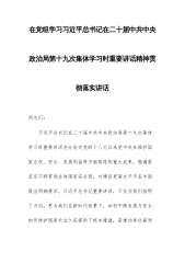 在党组学习习近平总书记在二十届中共中央政治局第十九次集体学习时重要讲话精神贯彻落实讲话同志们:习近平总书记在二十届中共中央政治局第十九次集体学习时重要讲话充分肯定党的十八大以来党中央在维护国家主权、安全、发展利益等方面取得的重大成果,强调要坚定不移贯彻总体国家安全观,对建设更高水平平安中国提出明确要求。习近平总书记重要讲话,不仅为我们指明了方向,更为我们在新时代背景下,如何平衡发展与安全、如何维护国家长治久安提供了根本遵循,是推动单位高质量发展的重要思想武器。我们要深入学习贯彻习近平总书记在中央政治局第十九次集体学习时的重要讲话精神,坚持总体国家安全观,全力维护政治安全、经济安全、社会安全、生...