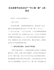 在市2025年春节前后安全稳定暨安全生产和自然灾害隐患排查百日攻坚行动动员部署会议上的讲话同志们:大家好!今天我们把各单位、各部门的主要负责人都召集过来,开这个春节前后安全稳定暨安全生产和自然灾害隐患排查百日攻坚行动动员部署会,就是因为春节马上就要到了,这两个节日对老百姓来说是一年中最重要的日子,大家都盼着能平平安安、开开心心过节。但越是这个时候,我们越得绷紧安全这根弦,不能出任何岔子。一、认清形势,切实增强责任感和紧迫感。我们都知道,安全稳定一直是我们工作的重中之重。但最近,不管是从全国还是我们周边地区的情况来看,安全生产事故和自然灾害都有发生,给人民群众的生命财产造成了不小的损失。就说上个...