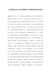 XX区推进安全生产和应急管理工作专题培训班开班式的讲话2024年9月9日上午,内蒙古自治区推进安全生产和应急管理工作专题培训班在厦门大学开班,自治区安全生产委员会办公室主任、自治区应急管理厅党委书记高润喜出席开班式并讲话。厦门大学国际关系学院(南洋研究院)院长致欢迎辞,自治区应急管理厅党委委员、政治部主任银德主持开班式。自治区安全生产委员会成员单位、全区盟市旗县应急管理系统、自治区应急管理厅机关有关领导和同志参加了开班式。高润喜指出,要提高政治站位,统一思想认识,深刻领会举办这次培训班的重要意义。自治区安委办、自治区应急管理厅历来重视干部的教育培训工作,今年将培训范围扩大到盟市和厅局层面,班次...