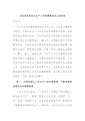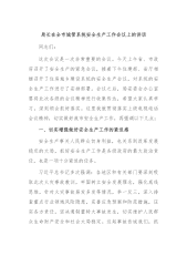 在园区2024年上半年防范重特大安全事故暨安全生产专项整治三年行动集中攻坚推进工作会议的讲话 同志们: 今天我们召开园区2024年上半年防范重特大安全事故暨安全生产专项整治三年行动集中攻坚推进工作会议,主要是贯彻落实全区、全市2024年上半年防范重特大安全事故暨安全生产专项整治三年行动集中攻坚推进工作电视电话会议精神,部署我区下半年安全生产工作。下面,我就如何抓好园区当前安全生产工作,讲几点意见: 一、提高站位,增强安全防范工作的责任感和紧迫感 安全生产事关人民群众生命财产安全,事关全区经济发展稳定大局,事关党和政府的形象和声誉。今年以来,我区认真贯彻落实习近平总书记关于防范化解重大安...