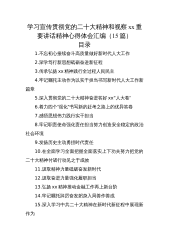 学习宣传贯彻党的二十大精神和视察xx重要讲话精神心得体会汇编(15篇)目录1.不忘初心接续奋斗高质量做好新时代人大工作2.深学笃行新思想砥砺奋进新征程3.传承弘扬xx精神践行全过程人民民主4.牢记嘱托主动作为以实干担当书写新时代人大工作新篇章5.深入贯彻党的二十大精神奋进答好xx“人大卷”6.着力四个“强化”书写新的赶考之路上的优异答卷7.感悟思想伟力践行实干担当8.牢记职责使命强化责任担当努力创造安全稳定的政治社会环境9.发扬历史主动勇担时代责任10.在全面学习全面把握全面落实上下功夫努力把党的二十大精神付诸行动见之于成效11.汲取精神力量砥砺奋发新时代12.汲取奋进力量强化履职担当13.弘...