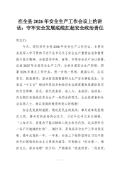在XX县安委会2026年一季度安全生产工作会议上的讲话(精品)同志们:今天,我们召开县安委会2026年第一季度安全生产工作会议,主要任务是深入学习贯彻习近平总书记关于安全生产的重要论述和重要指示批示精神,全面落实中央、省、市安全生产工作部署要求,分析研判当前形势,安排部署全县安全生产工作。刚才,会议通报了相关工作情况,大家观看了警示教育片。从片中反映的情况来看,教训极其深刻,必须引起我们高度警醒。下面,我讲几点意见。一、认清形势,时刻绷紧安全生产这根弦一季度是全年工作的"定盘星",也是安全风险集中叠加的关键阶段。当前,全县安全生产形势总体平稳,但我们绝不能有丝毫麻痹和懈怠。从全国范围看,安全生...