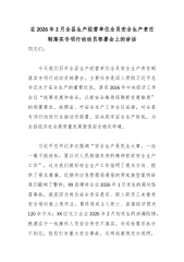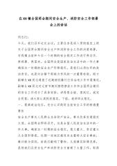 在XX县安委会2026年一季度安全生产工作会议上的讲话(精品)同志们:今天,我们召开县安委会2026年第一季度安全生产工作会议,主要任务是深入学习贯彻习近平总书记关于安全生产的重要论述和重要指示批示精神,全面落实中央、省、市安全生产工作部署要求,分析研判当前形势,安排部署全县安全生产工作。刚才,会议通报了相关工作情况,大家观看了警示教育片。从片中反映的情况来看,教训极其深刻,必须引起我们高度警醒。下面,我讲几点意见。一、认清形势,时刻绷紧安全生产这根弦一季度是全年工作的"定盘星",也是安全风险集中叠加的关键阶段。当前,全县安全生产形势总体平稳,但我们绝不能有丝毫麻痹和懈怠。从全国范围看,安全生...