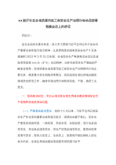xx副厅长在全省房屋市政工程安全生产治理行动动员部署视频会议上的讲话同志们:这次会议的主要任务是:深入学习贯彻习近平总书记关于安全生产重要论述和指示批示精神,认真贯彻落实国务院安全生产十五条措施和2022年3月31日全国、全省安全生产电视电话会议以及省政府党组第xxx次(扩大)会议精神,分析当前安全生产面临的严峻复杂形势,安排部署全省房屋市政工程安全生产治理两年行动主要任务,狠抓重大安全风险排查整治,切实加强全省住房城乡建设领域安全防范工作,确保专项治理行动取得实效。下面,我讲三点意见。一、提高政治站位,充分认清当前全省住房城乡建设领域安全生产形势和存在的突出问题(一)严格落实政治责任。党的十...
