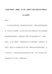 在全县“学标杆,找差距,反三违,抓落实”工贸行业安全生产警示会议上的讲话同志们:今天这次会议是经县委、县政府研究决定召开的,主要目的是贯彻落实国家、省、市安全生产会议精神,深入分析2022年第三季度全县工贸行业领域面临的新形势新任务新要求,部署推进第三季度工贸行业领域重点工作,“学标杆、找差距、反三违、抓落实”,不断促进安全生产工作提质增效,在更高起点、更高层次、更高水平上忠实履行安全生产职责,确保全县安全形势持续稳定,为下半年党的二十大胜利召开提供安全稳定的生产环境。下面,结合我县工贸行业领域安全生产工作实际,我讲四点意见:一、认清形势,提高认识,增强做好工贸行业安全生产工作的紧迫感、责任感...
