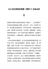 2022年3月27晚,在XX党支部的组织下,我们集体观看学习了由中组部和央视联合制作的《榜样7》节目,大家纷纷认真观看学习榜样精神,一个学习精神的过程,就是从榜样身上汲取力量的过程。通过观看《榜样7》节目,王亚平、王传喜、艾爱国、张玉滚、武大靖、林占熺、孟昆玉、路生梅等8位党的二十大代表的事迹坚定信念、践行宗旨,踔厉奋发,向榜样学习,要树牢初心。“一个有希望的民族不能没有榜样。”榜样是标杆,也是旗帜,更是一种强大的力量。当路生梅医生出现在荧屏时,他那句“为人党工作没有退休年龄、改变落后医疗条件,为佳县人民服务五十年。”令人动容,路医生从北京来到贫瘠荒凉的陕北高原,扎根佳县人民医院埋头苦干五十多...