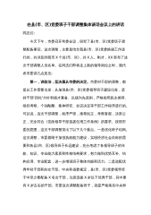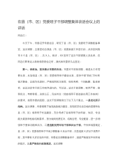 在县(市、区)党委班子干部调整集体谈话会议上的讲话同志们:今天下午,市委召开常委会议,研究了县(市、区)党委班子调整配备事宜。这次调整,主要是结合我县(市、区)党委换届工作进行的,共涉及到我市X个县(市、区),共X人。刚才,XX宣布了这次干部调整人员名单。在同志们即将走上新的领导岗位之时,我代表市委讲几点意见:第一,讲政治,坚决服从市委的决定。市委对干部的调整都是从工作需要出发,从加强县(市、区)党委领导班子建设出发,坚持干部“四化”方针和德才兼备、以德为先原则,严格按照民主推荐、组织考察、个别酝酿、集体研究、会议决定等干部工作程序进行的。可以说,这次干部调整,程序严密,推荐民主,考察客观,决...