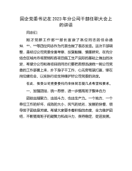 国企党委书记在2023年分公司干部任职大会上的讲话同志们:刚才党群工作部**部长宣读了各位同志的任命通知,**、**等四位同志作为代表也做了表态发言。这次干部调整,是经过公司党委全面考察、反复酝酿、慎重研究,在充分结合区域内市场营销和各项目施工生产实际的基础上做出的决定,希望分公司和各项目的同志们要把思想迅速统一到公司党委的工作部署上来,扑下身子干工作,心无旁骛谋打赢,铆在岗位建功业,以实际行动支持维护好公司党委的决定。在此,我受公司党委委托向全体同志提几点希望和要求。一、加强团结,统一思想,进一步提高班子整体合力团结出凝聚力,出战斗力,也出生产力。一个地方、一个单位工作的好坏,成效的大小,风...