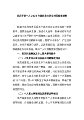 2022年度组织生活会班子对照检查材料按照县委组织部2022年度组织生活会的部署要求,XXXX党支部在深入学习贯彻习近平新时代中国特色社会主义思想,学习贯彻党的二十大精神的基础上,广泛征求意见建议,认真开展谈心谈话,深入自查互查,联系实际进行党性分析,总结自身思想、作风、工作和生活情况,深入查找存在的主要问题,深挖产生问题的思想根源,并提出了今后努力的方向和整改措施。现作以下对照检查。一、存在的主要问题(一)在增强政治功能方面。党支部能够严格按照党章规定的职责,加强政治建设,教育党员干部深刻领悟“两个确立”的决定性意义,增强“四个意识”、坚定“四个自信”、做到“两个维护”,强化思想引领,坚持用...