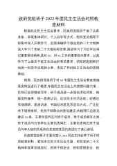 政府党组班子2022年度民主生活会对照检查材料