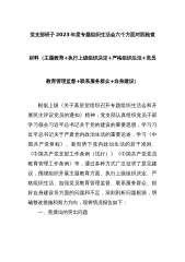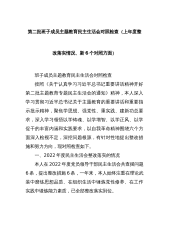 党支部班子2023年度专题组织生活会六个方面对照检查材料(主题教育+执行上级组织决定+严格组织生活+党员教育管理监督+联系服务群众+自身建设)根据上级《关于基层党组织召开专题组织生活会和开展民主评议党员的通知》精神,党支部认真组织党员干部学习领会习近平总书记关于党的建设的重要思想,学习习近平总书记关于严肃党内政治生活的重要论述,学习《中国共产党章程》、新形势下党内政治生活的若干准则、《中国共产党支部工作条例(试行)》《中国共产党党员教育管理工作条例》等,通过多种方式广泛征求了意见建议,围绕组织开展主题教育方面、执行上级组织决定、严格组织生活、加强党员教育管理监督、联系服务群众、抓好自身建设等方...