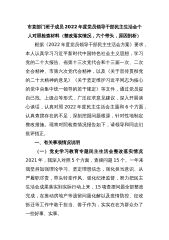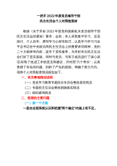 一把手2022年度党员领导干部民主生活会个人对照检查材根据《关于开好2022年度党和国家机关党员领导干部民主生活会的通知》要求,会前,本人采取集中学习、交流探讨、个人自学、撰写学习心得等形式,认真学习学习习近平总书记在中央政治局民主生活会上的重要讲话精神,党的二十大精神等内容,提升了党性修养,为开好本次民主生活会打好了坚实基础。同时与党员、与班子成员进行了谈心谈话,听取了改进工作的意见和建议,并对照“六个带头”,认真查摆了存在的问题、剖析了产生的原因、明确了努力方向。现将个人对照检查情况报告如下。一、有关事项情况说明(一)党史学习教育专题民主生活会整改落实情况(二)专题民主生活会整改措施落实情...