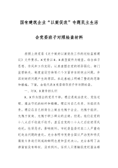 国有建筑企业“以案促改”专题民主生活会党委班子对照检查材料 按照上级党委《关于做好以案促改工作的纪检监察建议》文件要求,X党委以X、X典型案件为镜鉴,结合班子思想、作风和工作实际,认真查摆在党的领导弱化、部门监管缺失、制度虚设空转等六个方面存在的突出问题,并深刻剖析问题产生的原因,在此基础上明确了整改的思路和措施。下面,由我代表X党委领导班子作对照检查。 一、对X、X案件的认识 X、X作为国企的党员干部,理应是政治坚定、党性过硬、遵法守纪的标杆和楷模,理应对自己负责、对组织负责,理应在自己的岗位上做出无愧于企业、无愧于组织、无愧于家庭、无愧于职工群众的业绩。但是,他们在党的十八大后不收敛...