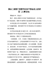 国企二级部门党委书记在干部会议上的讲话(人事任免)尊敬的XX,同志们:刚才,组织人事部XX宣读了集团党组决定,XX同志作了表态发言。我和XX领导班子坚决拥护和服从公司决定。XX同志是公司XX的老领导,为公司XX改革发展作出了卓越的贡献。我代表班子对XX同志前往XX任职表示衷心的祝福。XX同志长期从事XX相关工作,是XX的行家里手。我代表班子对XX同志到XX工作表示热烈的欢迎。借此机会,我作三个方面的表态发言。一是把思想、工作、行动统一到集团党组的决定上来。兵马未动粮草先行,公司的发展离不开XX的工作。当前,XX正处于难得的历史发展机遇期,XX任务繁重、责任重大、使命光荣。XX全体干部员工,对X...