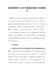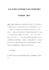 XX区XX街道卫生院党委班子2025年抓基层党建工作述职报告(精品)2025年,XX区XX街道卫生院党委班子坚持以习近平新时代中国特色社会主义思想为指导,深入学习贯彻党的二十大及二十届四中全会精神,坚决扛起管党治党政治责任,以“第一责任人”的担当,引领全院党员干部职工深刻领悟“两个确立”的决定性意义,增强“四个意识”、坚定“四个自信”、做到“两个维护”。一年来,院党委始终坚持党建工作与卫生健康事业发展同谋划、同部署、同推进,聚焦中心大局,狠抓任务落实,以高质量党建引领卫生院高质量发展,为保障人民群众生命健康提供了坚强的政治和组织保证。一、基本情况(一)强化政治引领,筑牢思想根基,确保卫生健康事...