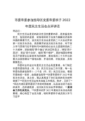 市委常委参加指导区党委常委班子2022年度民主生活会点评讲话