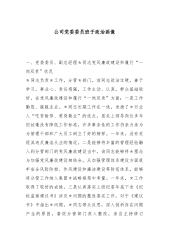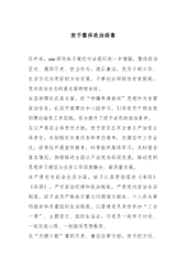公司党委委员班子政治画像一、党委委员、副总经理*同志党风廉政建设和履行“一岗双责”状况*同志负责*工作,分管*部门。该同志政治过硬,善于学习,事业心、责任感强,工作主动、认真,群众基础较好。在党风廉政建设和履行“一岗双责”方面:一是工作勤恳、兢兢业业。*同志长期工作在一线,发扬了*行业人“吃苦耐劳、爱岗敬业”的优点,虽走上领导岗位多年但丝毫没有降低工作标准,许多事务性的工作仍亲力亲为为管理干部和广大员工树立了好的榜样。一年来,没有发现其违反廉洁从业的情况。二是能够将丰富的管理经验融入到分管部门的党风廉政建设当中。该同志能够将*理念与加强党风廉政建设相结合,从加强管理体系建设方面筑牢安全风险防控...