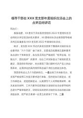 领导干部在参加XXX党支部组织生活会上的点评讲话(全文1608字)各位同志们:前期,XX党支部对开好这次组织生活会高度重视,提前谋划部署,扎实做好各项准备工作。会前深入学习了党的XX大报告和党章,认真学习习近平总书记在中央政治局组织生活会、二十届中央纪委二次全会上的重要讲话精神,严格按照中央、省委、XX委关于组织生活会的有关要求,精心组织学习研讨,广泛征求意见建议,深入开展谈心谈话,认真检视剖析,为开好组织生活会打下了坚实基础。刚才,会议也通报了XXX党支部上一年度党史学习教育专题组织生活会整改落实情况,传达学习XXX领导参加组织生活会会议精神。XXX代表党支部班子作对照检查,并带头作个人对照...