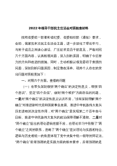党组班子成员2022年度民主生活会个人对照检查材料根据《关于做好2022年度党委领导班子和党员干部民主生活会有关工作的通知》的要求,会前,本人原原本本学习党的二十大报告和《中国共产党章程(修正案)》,认真学习习近平总书记在大会上的系列重要讲话等内容,认真研读了警示教育材料,与班子成员之间都开展了谈心谈话,互相虚心听取意见建议,在此基础上,严格按照文件要求,紧扣思想、工作和生活实际,对照六个方面问题,认真检视查摆自身存在的突出问题,深入剖析问题产生的根源,进一步明晰了今后的努力方向和整改措施,现对照检查报告如下:一、存在问题(一)在带头深刻领悟“两个确立”的决定性意义,增强“四个意识”、坚定“四...